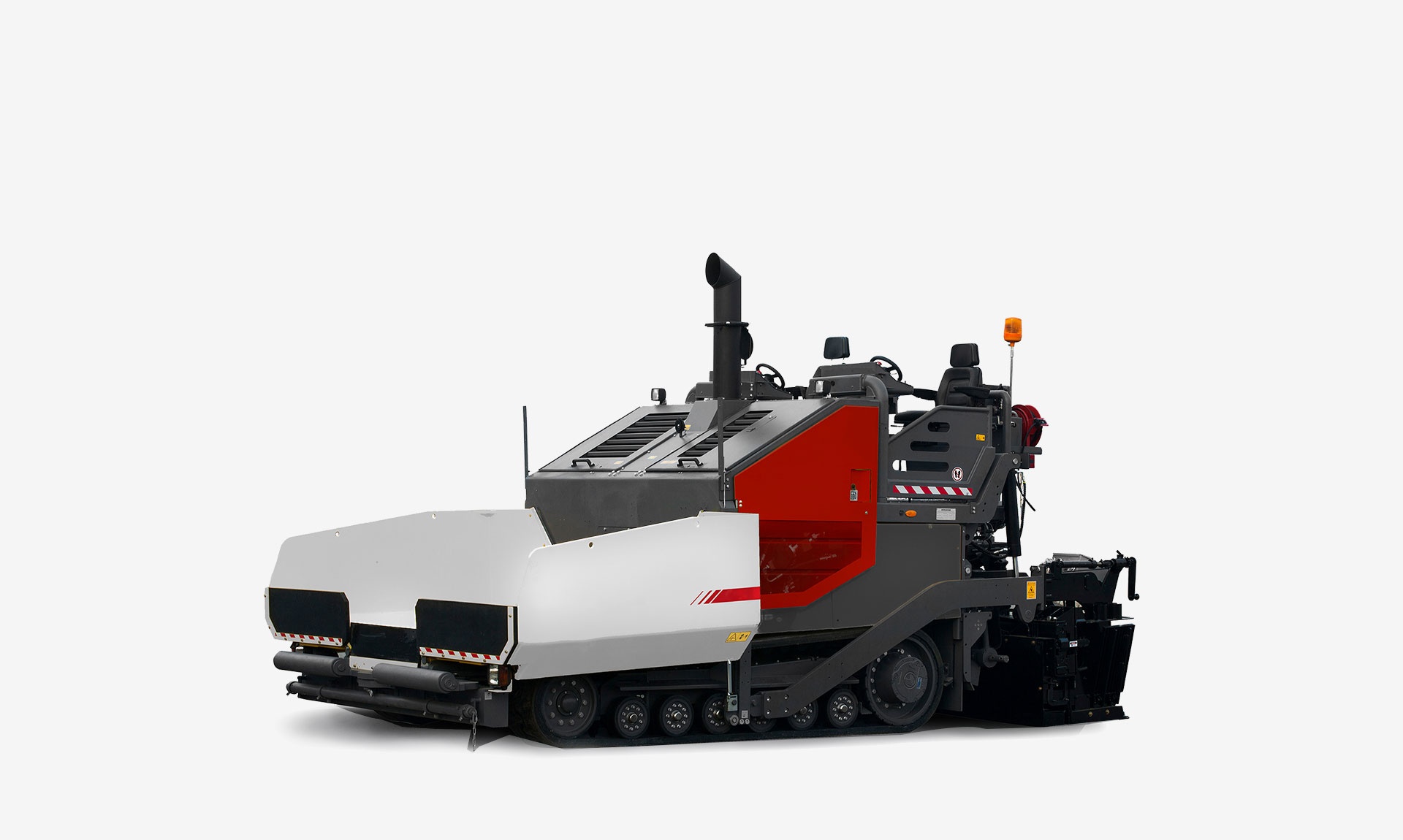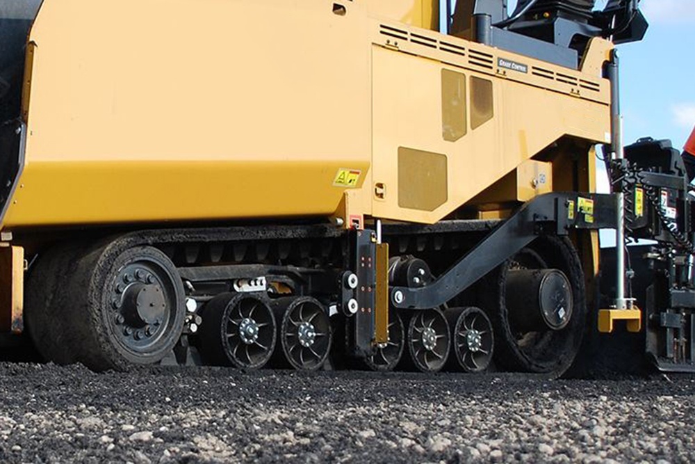 履带整体采用纯橡胶无铁齿设计,行走更平稳,摊铺更均匀。